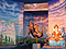Rama and Laxmana meet Hanuman The decoration designed by Digambar Kumbhar of Ichalkaranji, shows Hanuman becoming a Rama disciple. It depicts how Rama and Laxmana meet Hanuman during their exile and accept his as their disciple after which Hanuman carried them across the jungle on his shoulders. |